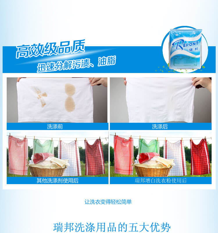 產(chǎn)品說明:低堿性配方、高活性物含量,無論冷洗、熱洗都能發(fā)揮優(yōu)越功效,添加瑩光增白劑,令衣物光潔雪白,色彩艷麗,懸污劑,衣物歷久常新。